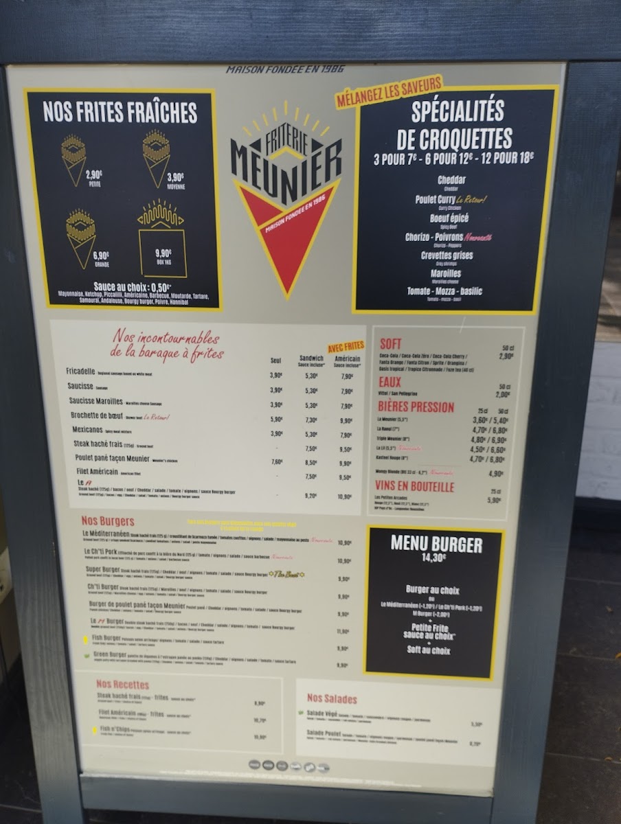 Welcome to Friterie Meunier, a culinary gem nestled in the heart of Valenciennes at 13 Pl. d'Armes. This charming eatery specializes in delectable comfort food that leaves patrons craving more. As you explore the menu, you'll encounter a variety of delicious options tailored to satisfy every palate.